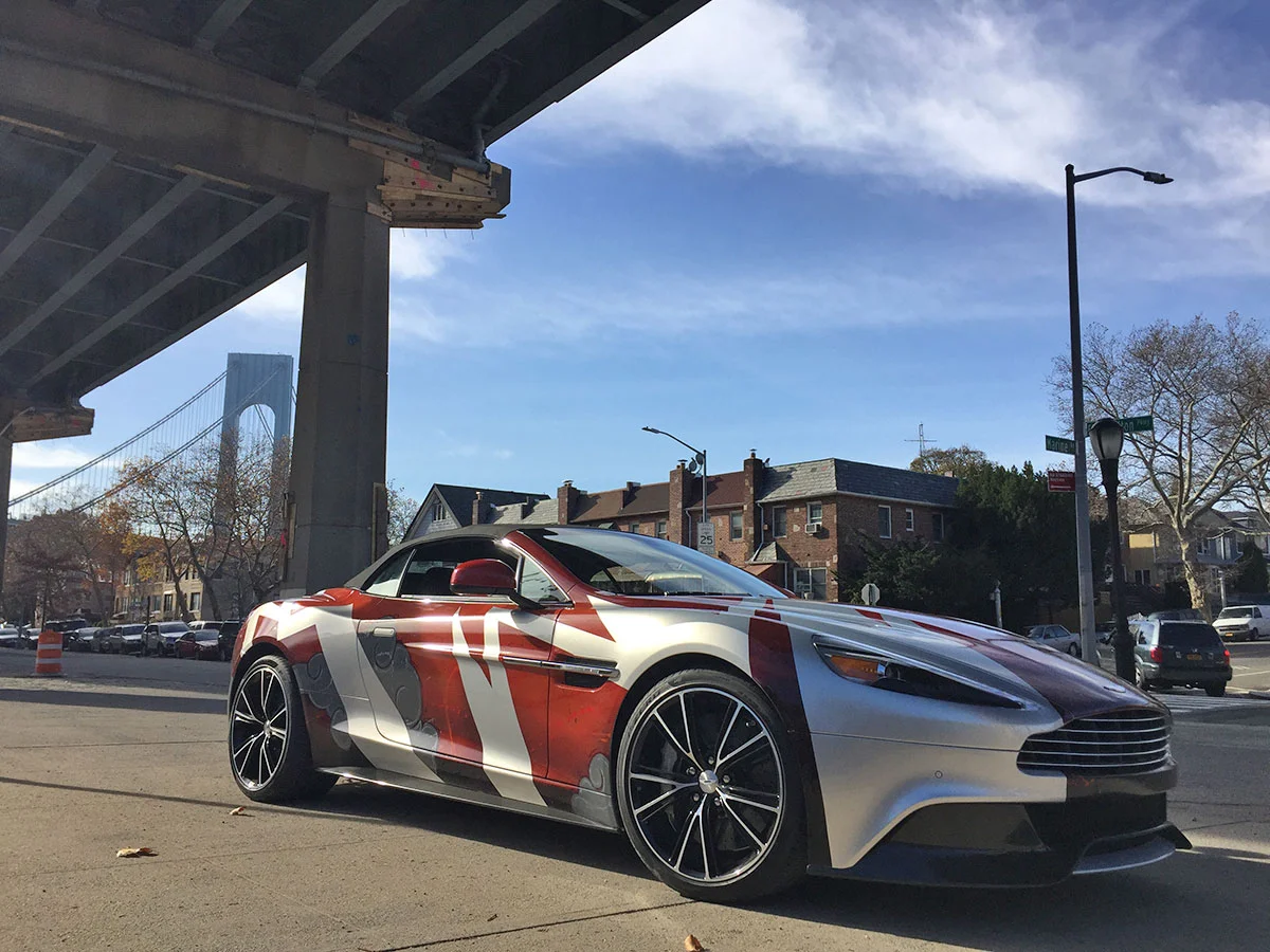Like with an actual human tattoo, all of this ink does not mask the car’s bold identity. “I drove it through some pretty rough neighborhoods in Brooklyn when I finished in my studio,” KAVES says. “Jaws were dropping. Kids 9 and 10 years old came running out into the street and recognized it—that’s an Aston Martin Vanquish—and wanted to take its picture.”